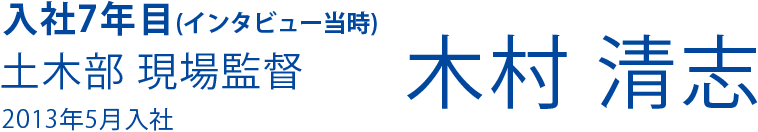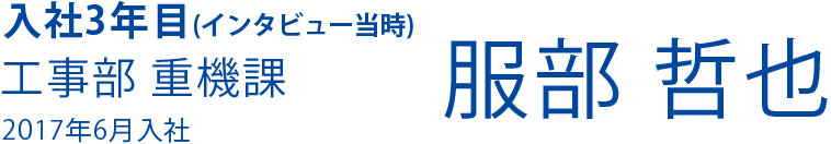 彼は、工事経験を4年経た後、当社に入社して7年になります。先輩たちの指導の下色々経験を積み二級土木施工技士の資格も取得し、ようやく現場も一人で任されるようになったことが嬉しいようで、毎日楽しそうに仕事に励んでいます。