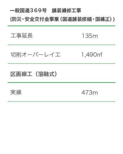 - 一般国道369号 舗装補修工事(防災・安全交付金事業(国道舗装修繕))